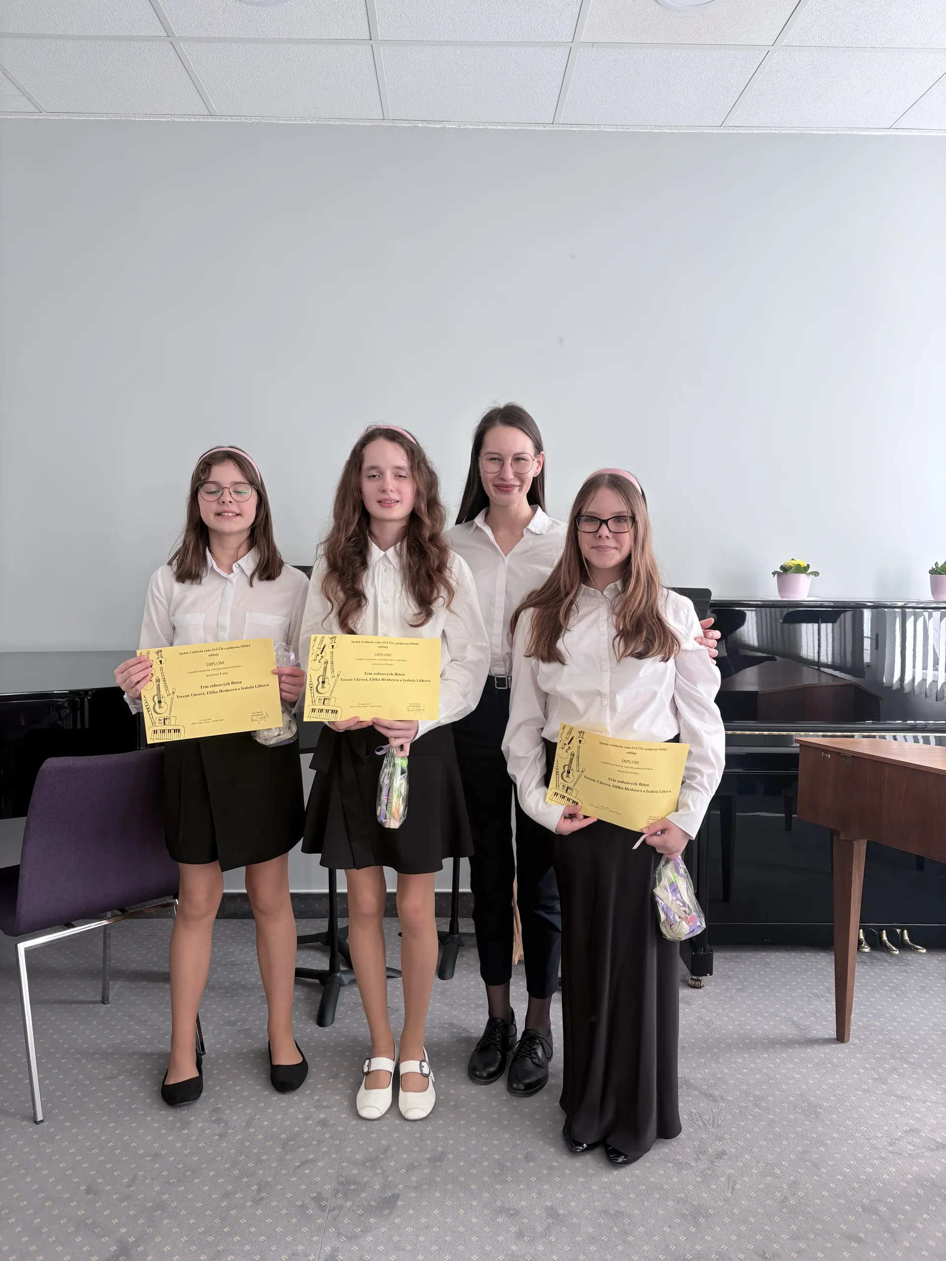 V letošním ročníku Soutěží základních uměleckých škol máme celkem 4 želízka v ohni. A to flétnové AMA trio ve složení Adéla Dražinová, Adéla Grobařová a Markéta Skybíková, Trio zobcových fléten ve složení Terezie Uhrová, Eliška Hrabcová a Izabela Lišková, Žesťový kvartet ve složení Martin Vašínek, Pavel Palička, Tereza Fialová a Martin Pálka a Saxofonové duo, které tvoří Jakub a Pavel Ondečkovi.